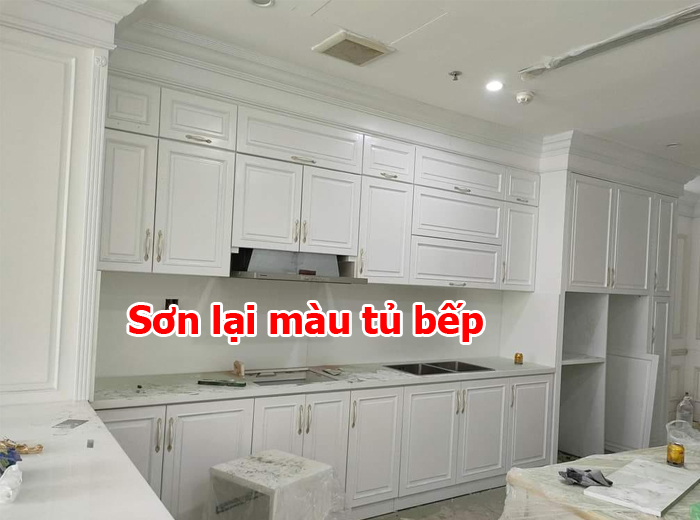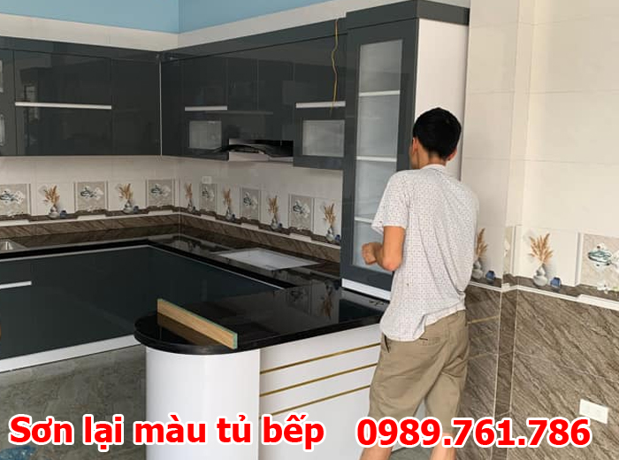 Sơn sửa lại màu tủ bếp theo yêu cầu khách hàng